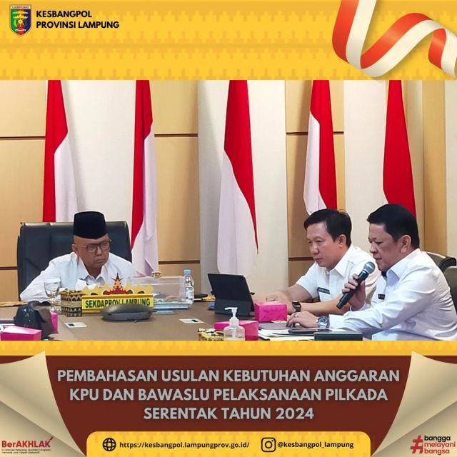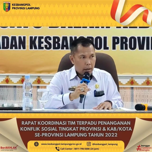 Tabik Pun ππ.Badan Kesatuan Bangsa dan Politik Provinsi Lampung mengadakan kegiatan Pembinaan Kewaspadaan Nasional terhadap Ancaman, Tantangan, Hambatan dan Gangguan bagi Tokoh Agama dan Tokoh Masyarakat, di Golden Tulip, Senin 18 September 2023.